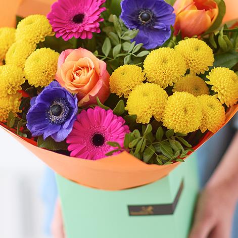 A sweet little giftbox with a bright handcrafted bouquet inside.